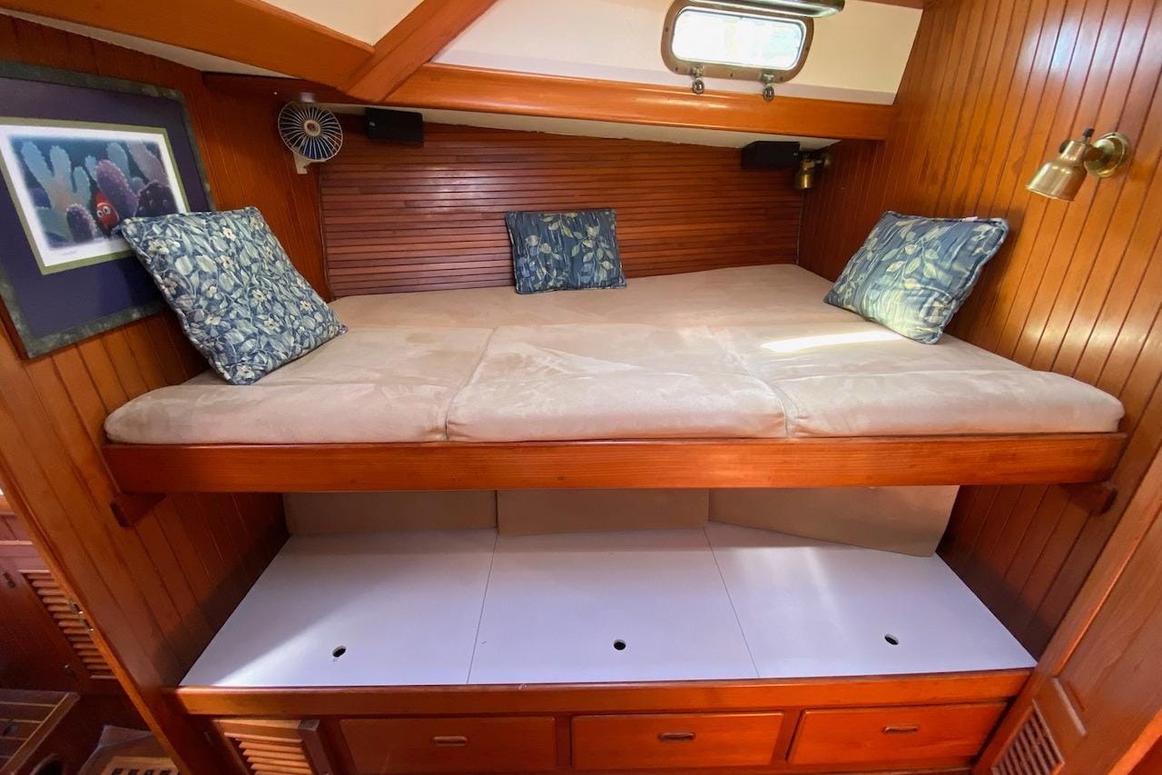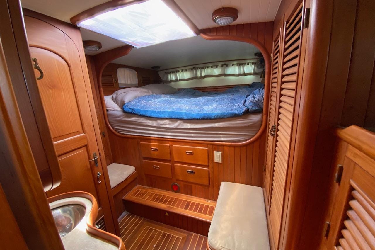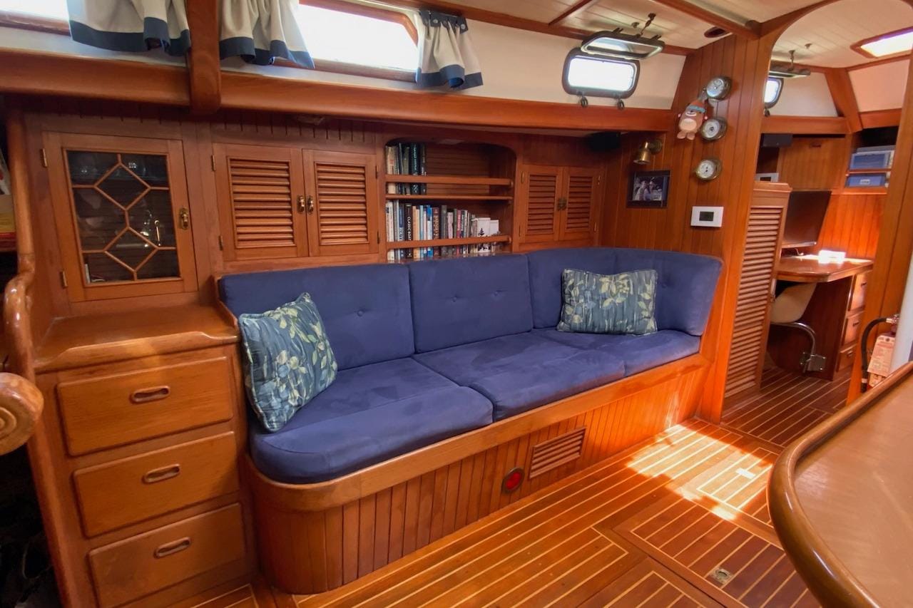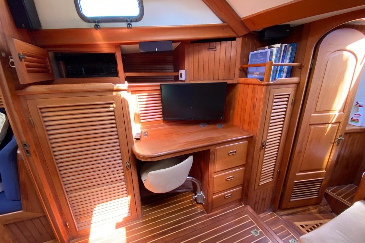Ganache II was launched in 1985 and has served as a comfortable, full-time liveaboard and dependable bluewater cruiser since 2000 under her current (second) owners. Her warm, rubbed-effect solid teak interior offers exceptional craftsmanship and an inviting atmosphere, complemented by generous storage throughout—perfect for extended cruising.