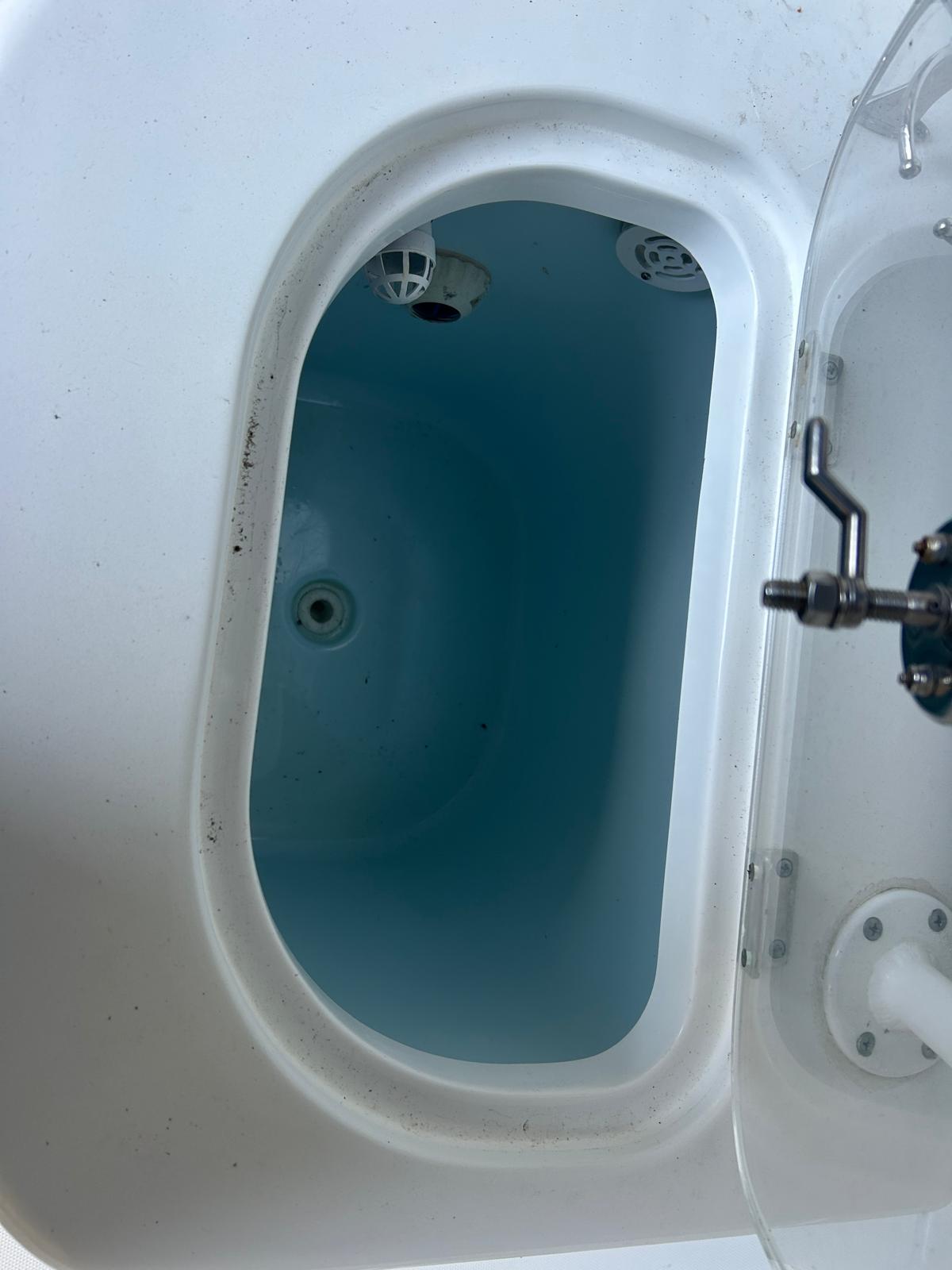 The deck layout was designed around fishing first: walkaround access on all sides, three livewells, a 60-gallon insulated in-floor fishbox, and cockpit bolsters that let you work the rail comfortably all day. The removable rear bench clears out in seconds when you need the space. Rod holders and stainless hardware throughout. Nothing aftermarket, nothing cobbled together.