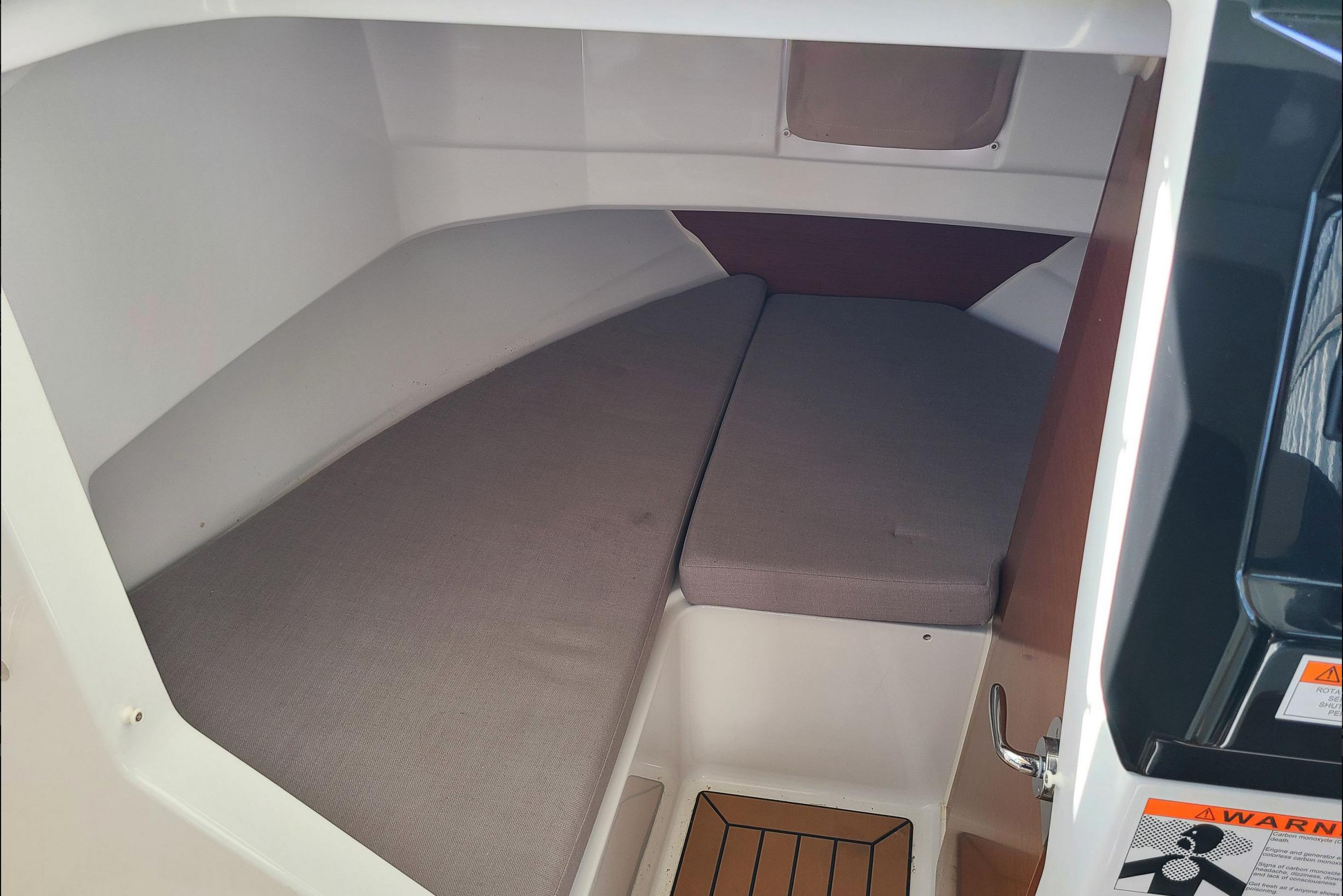 For those who crave outdoor adventure, the NC 795 boasts a forward cockpit that is both comfortable and versatile, perfect for spending quality time with friends and family. The seating transforms into an expansive sunpad when anchored, providing the ideal space to soak up the sun or relax after a day of exploring. Storage is abundant, with easy access beneath the front bench seat to stow your gear.