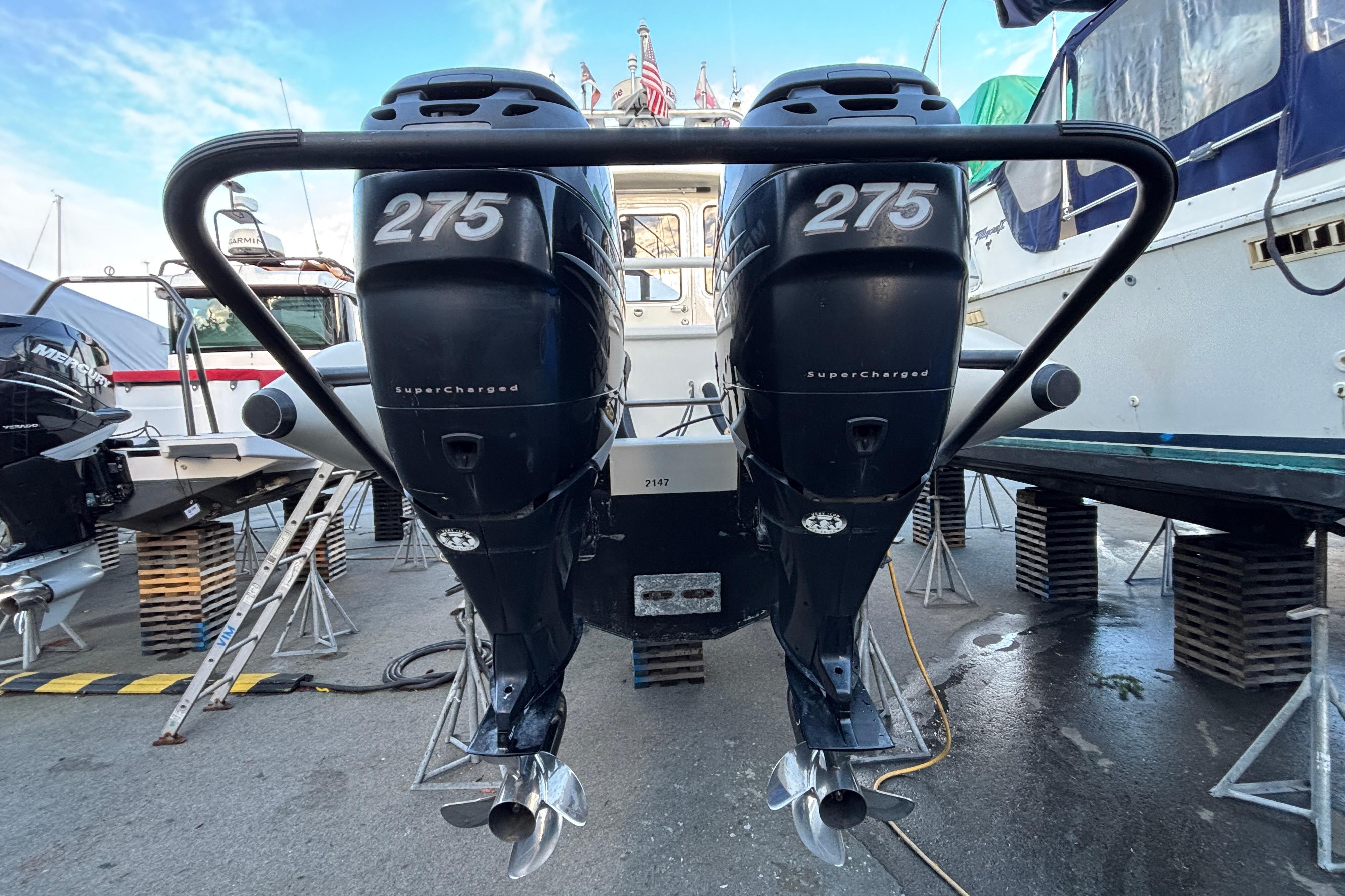 • Radar/antenna arch; engine guard; twin tow posts at transom