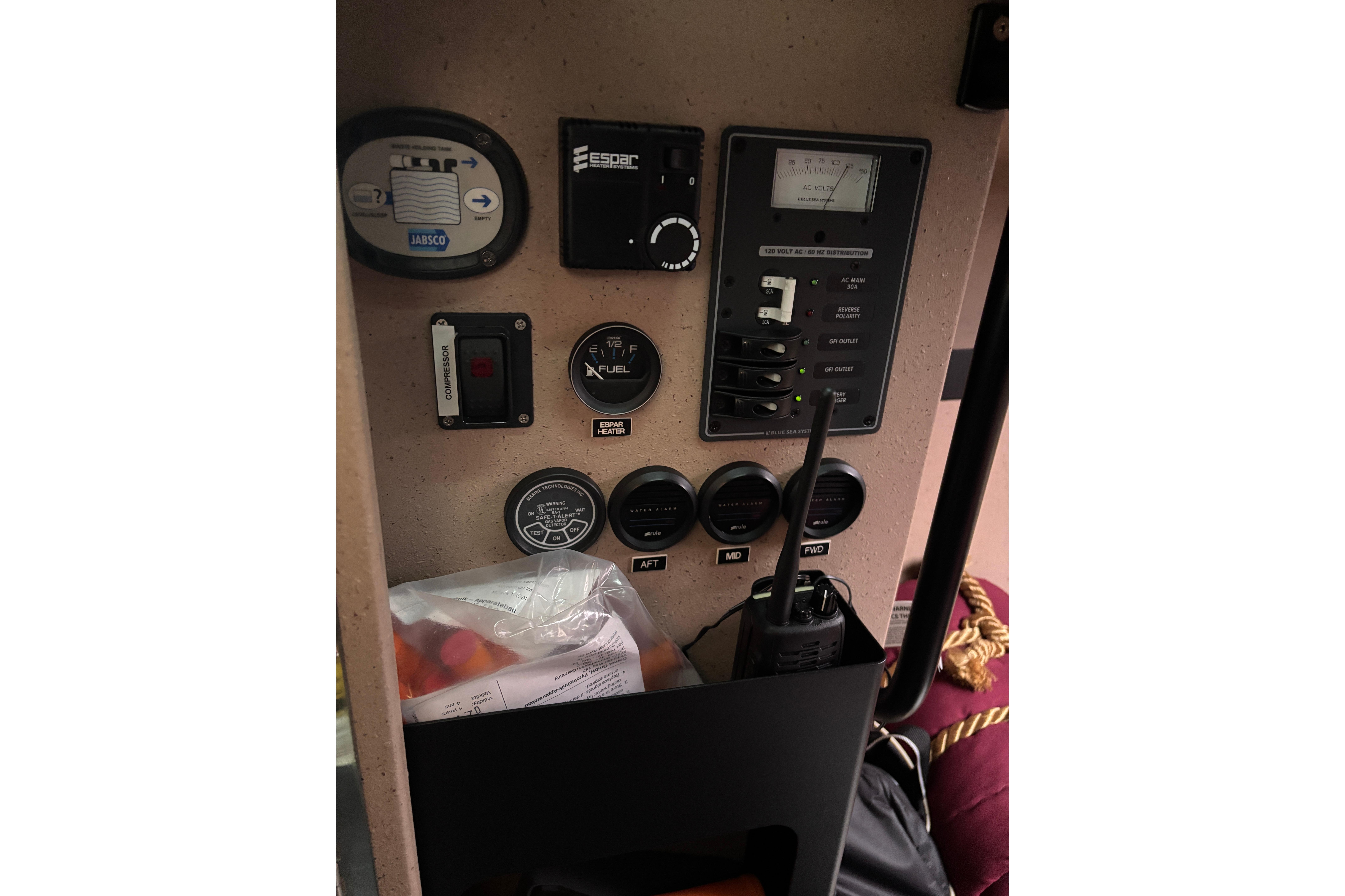 • Dual AGM batteries with distribution panels; shore power with 110V outlets; built-in