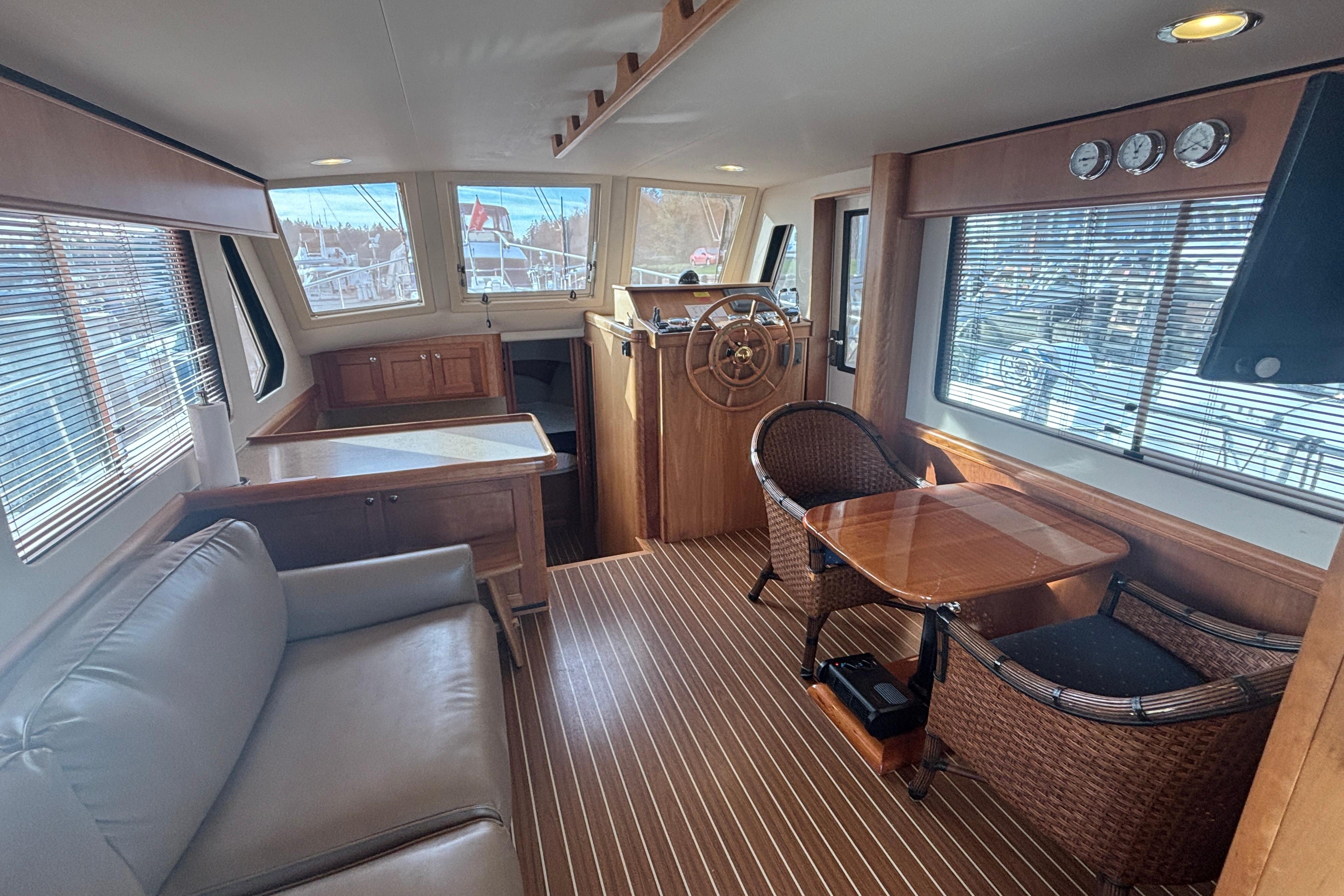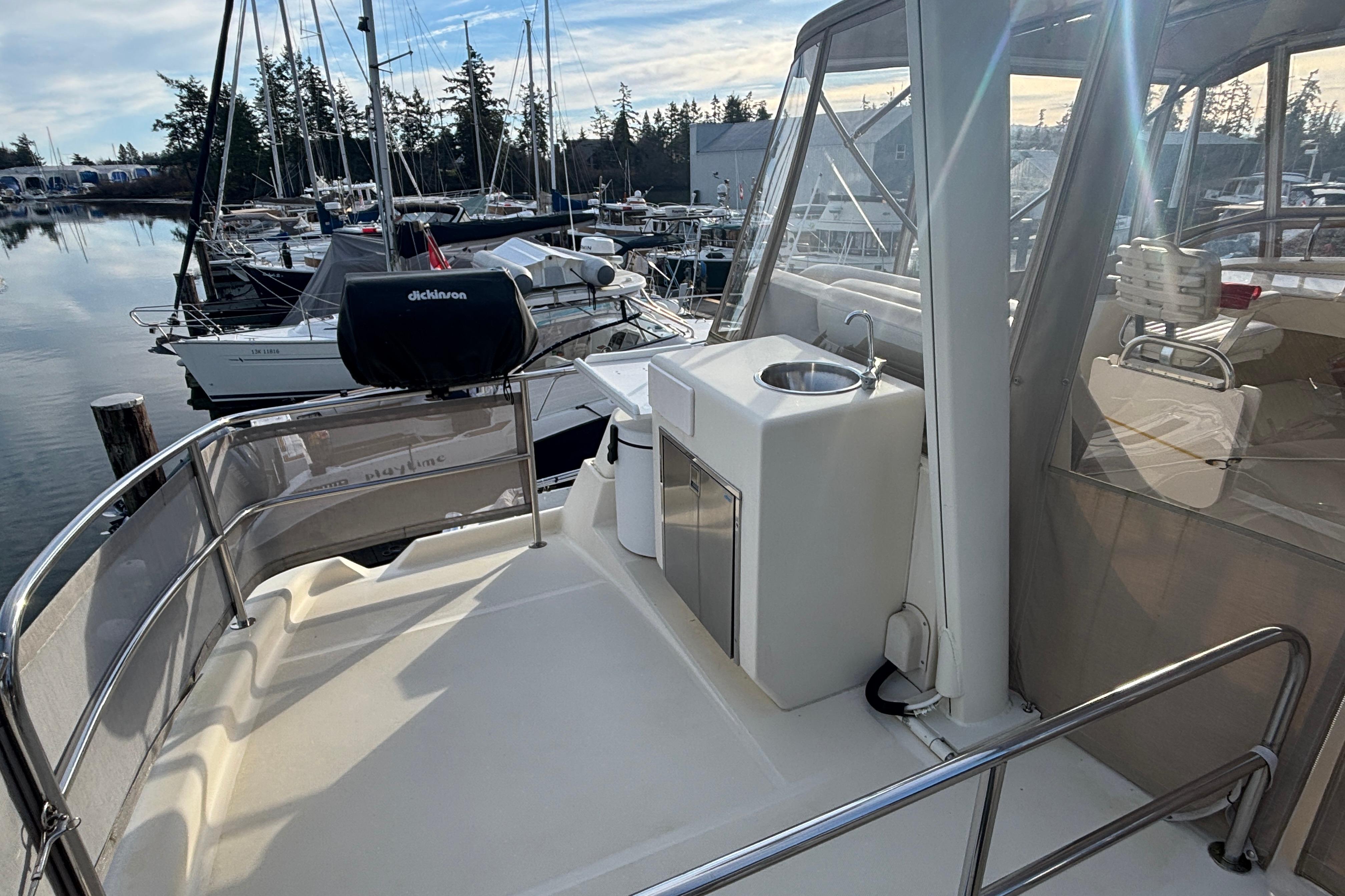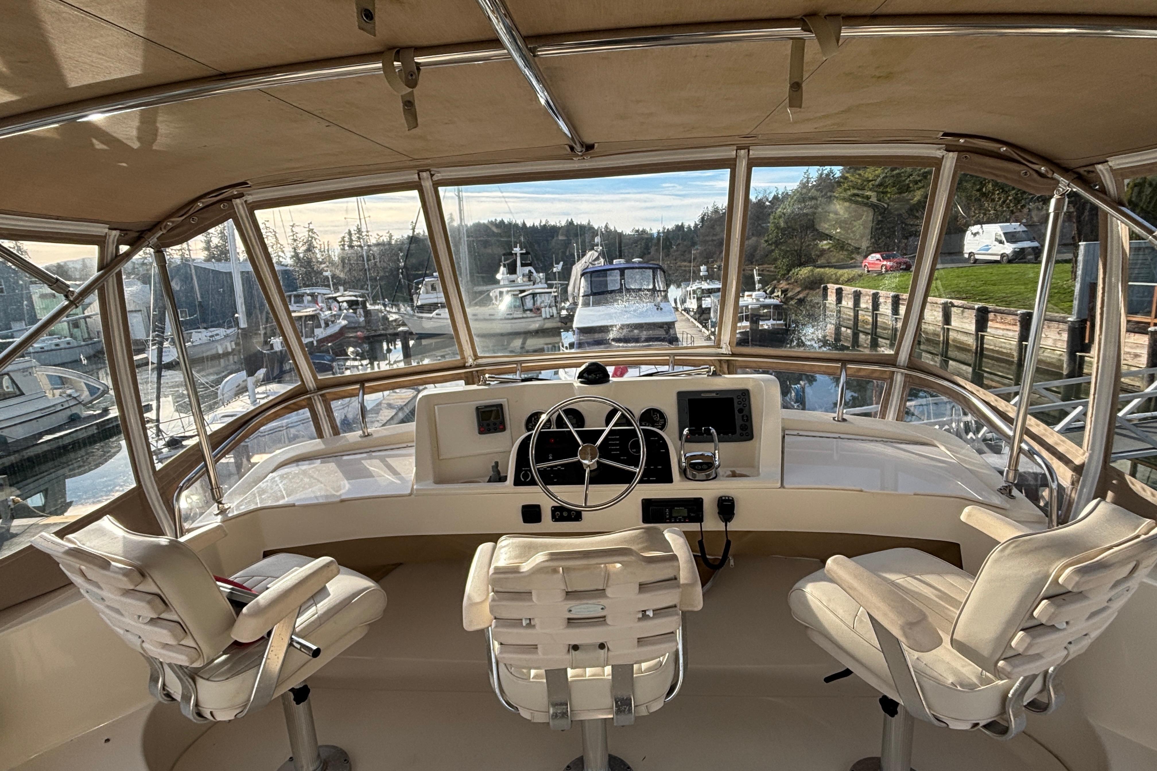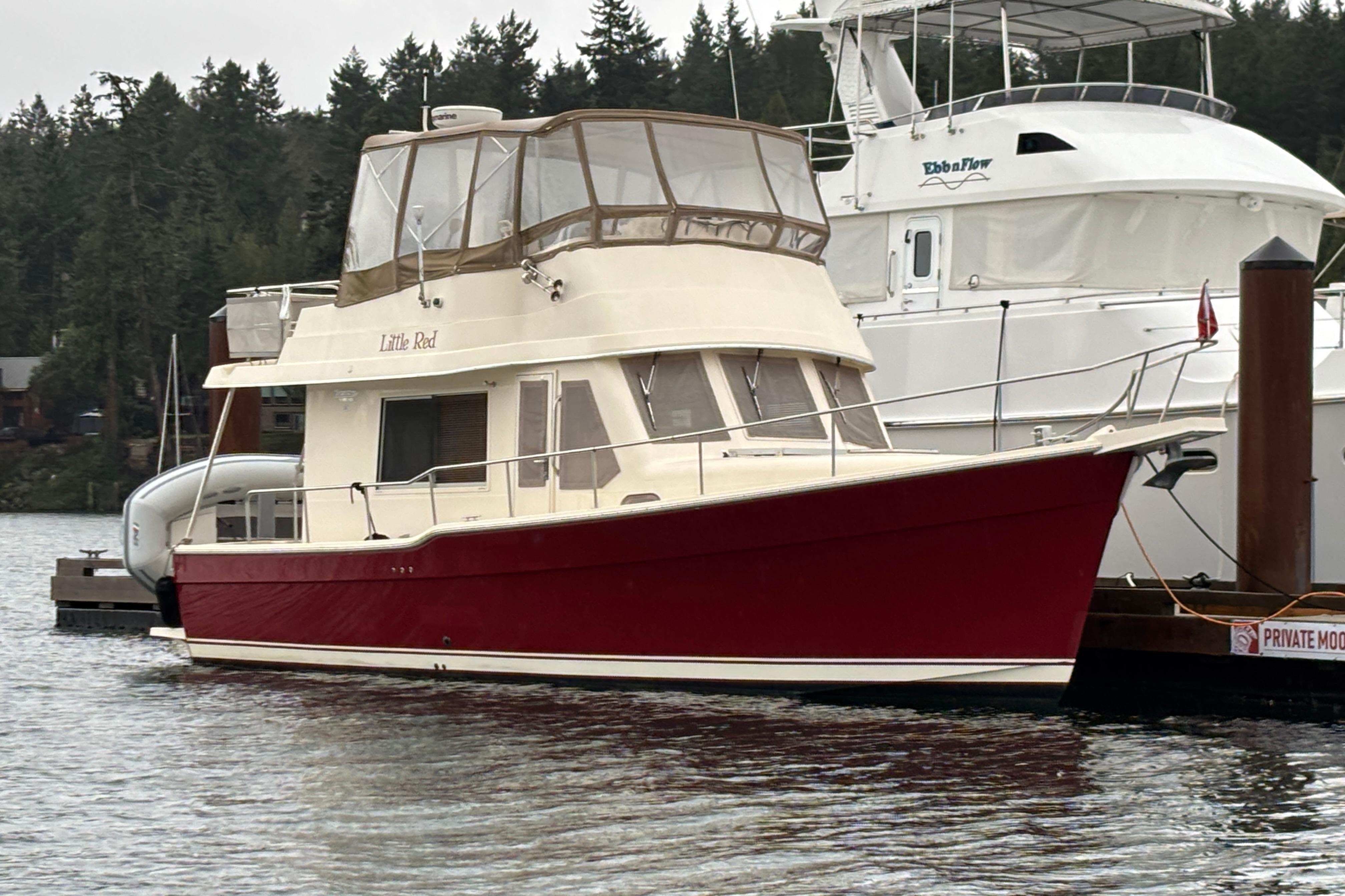 "LITTLE RED" is a premium example of this very popular Coastal cruiser. She is the prettiest boat with her gleaming Red Awl Grip hull finish. She has been professionally maintained and features a deluxe bridge enclosure and a 2022 9.5' AB Rib with 20hp. on a Sea Wise davit. She's a breeze to operate with her economical twin Yanmar 4cyl. diesels along with bow and stern thrusters. A 5.5 kw. Gen Set, autopilot, and Espar furnace complete the package.