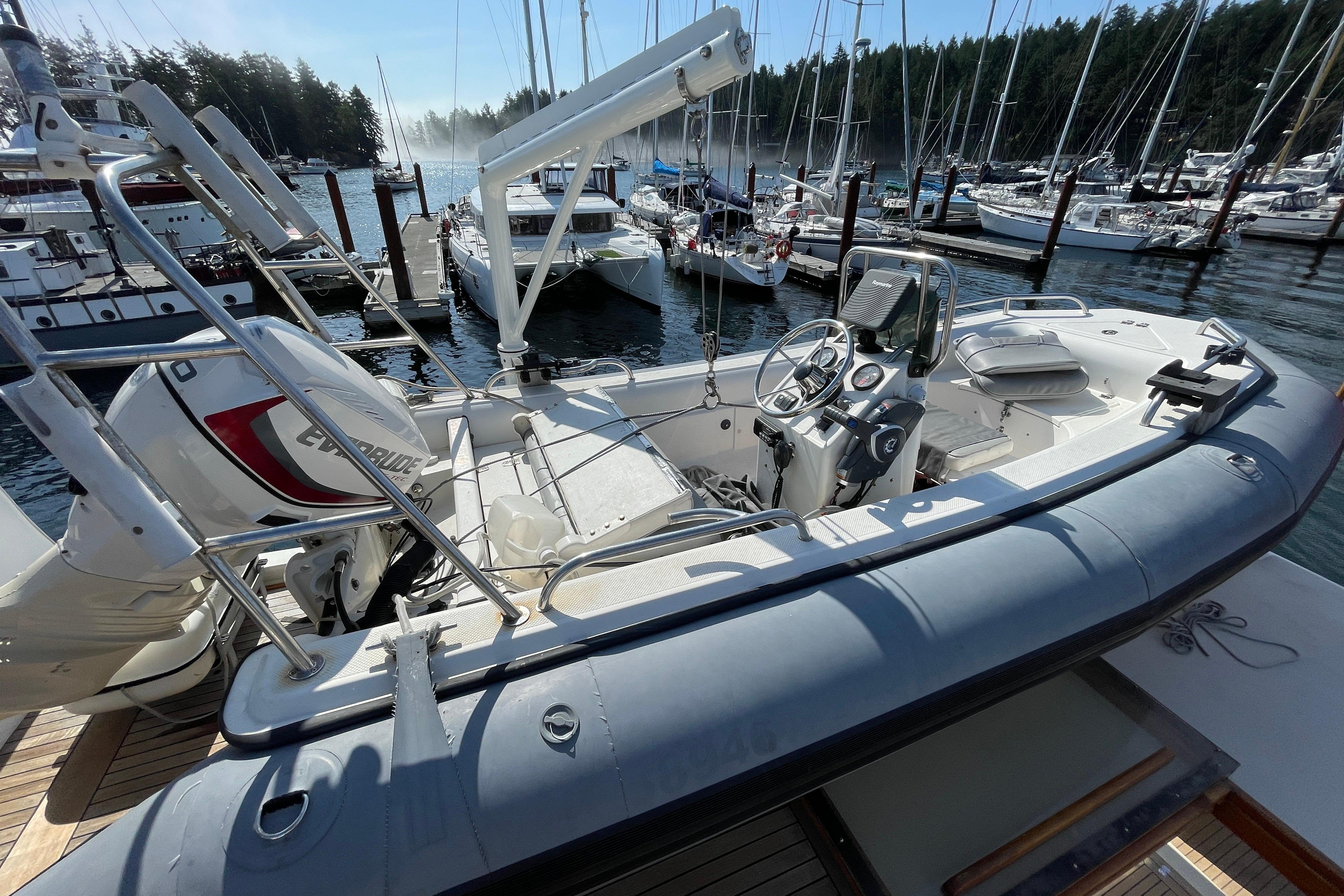 * 1998 Rendova 14' 6" fibreglass RIB with 2016 60 hp. E-TEC Evinrude, Garmin GPS Map 178C, Icom VHF