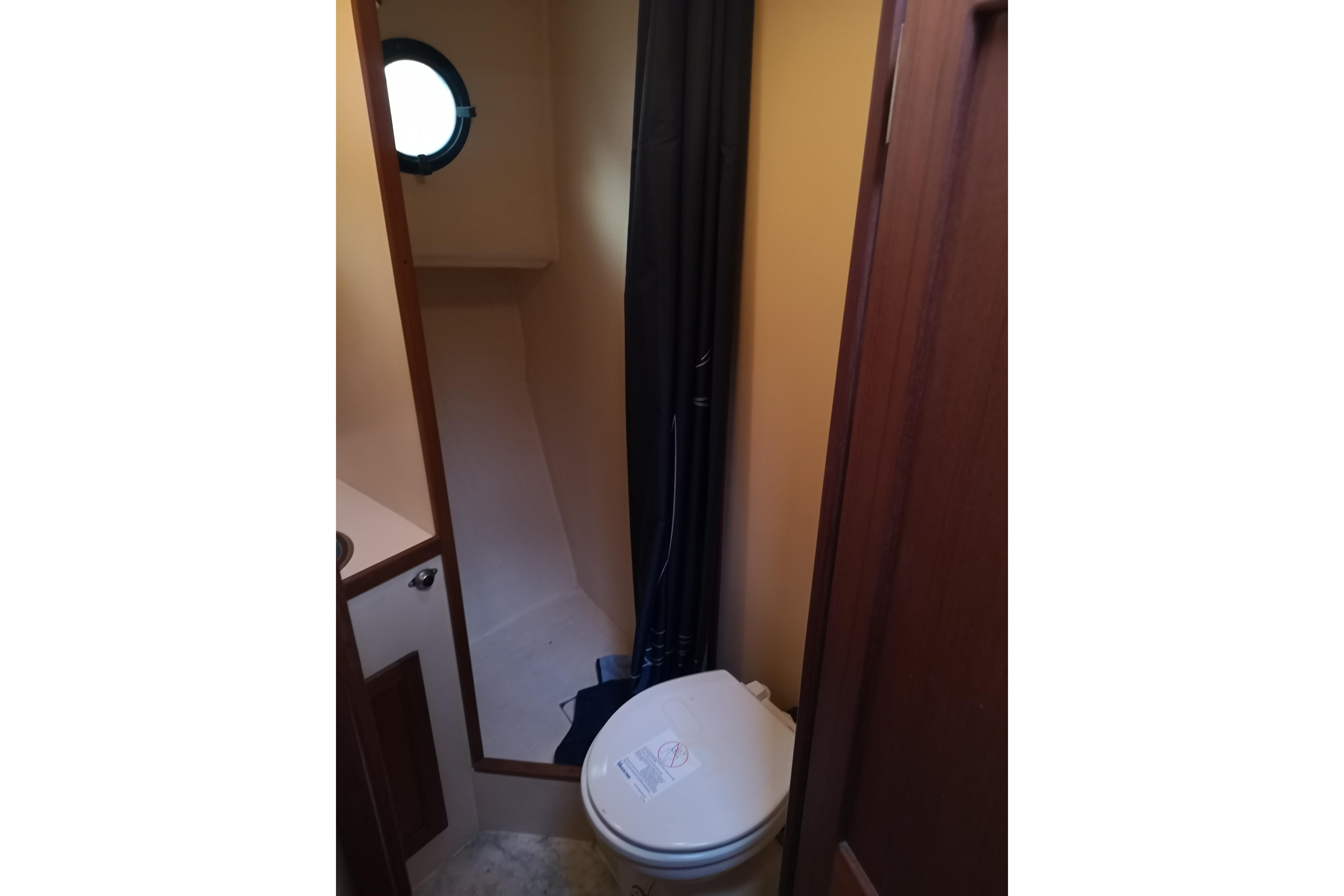 Head back inside and descending to the starboard, the comfortable pullman berth provides a restful space, while the spacious head adds convenience for extended trips.