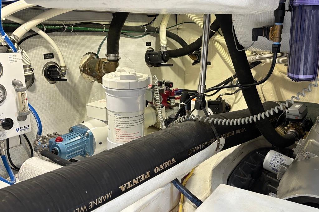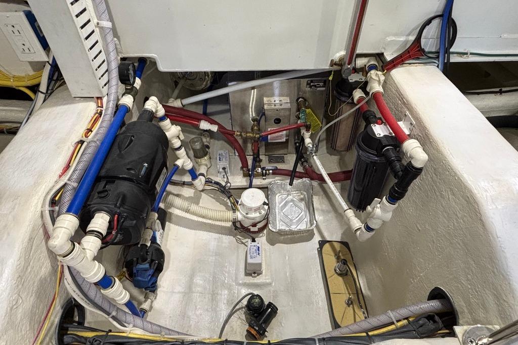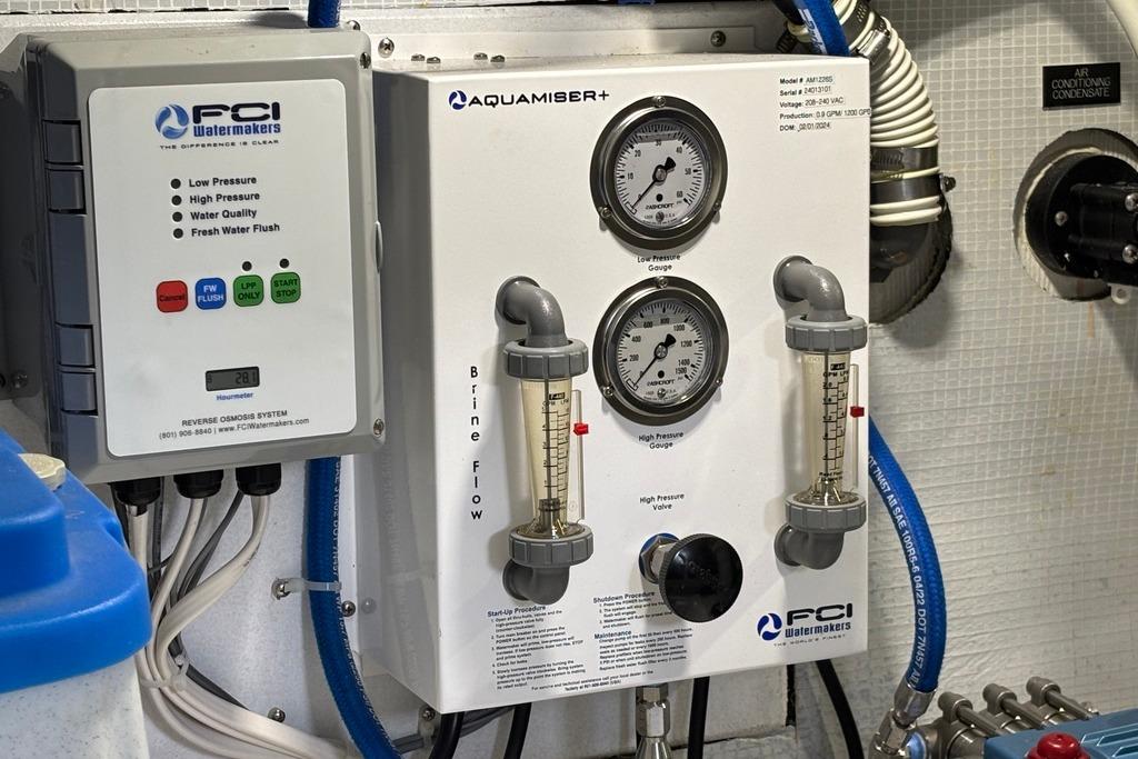 February 2024: FCI Aquamiser 1200 (50gph) Watermaker installation including upgraded water filtration system with UV sterilizer.