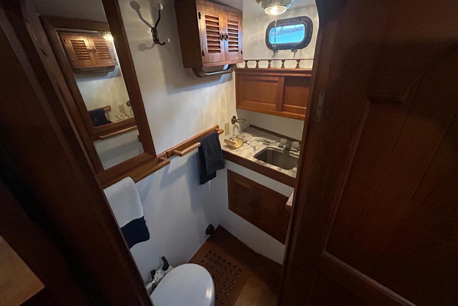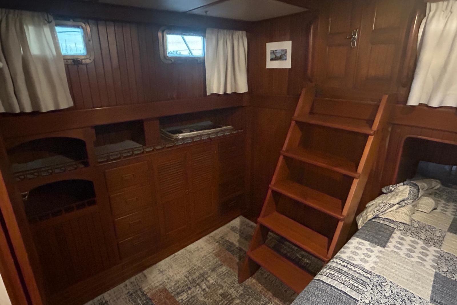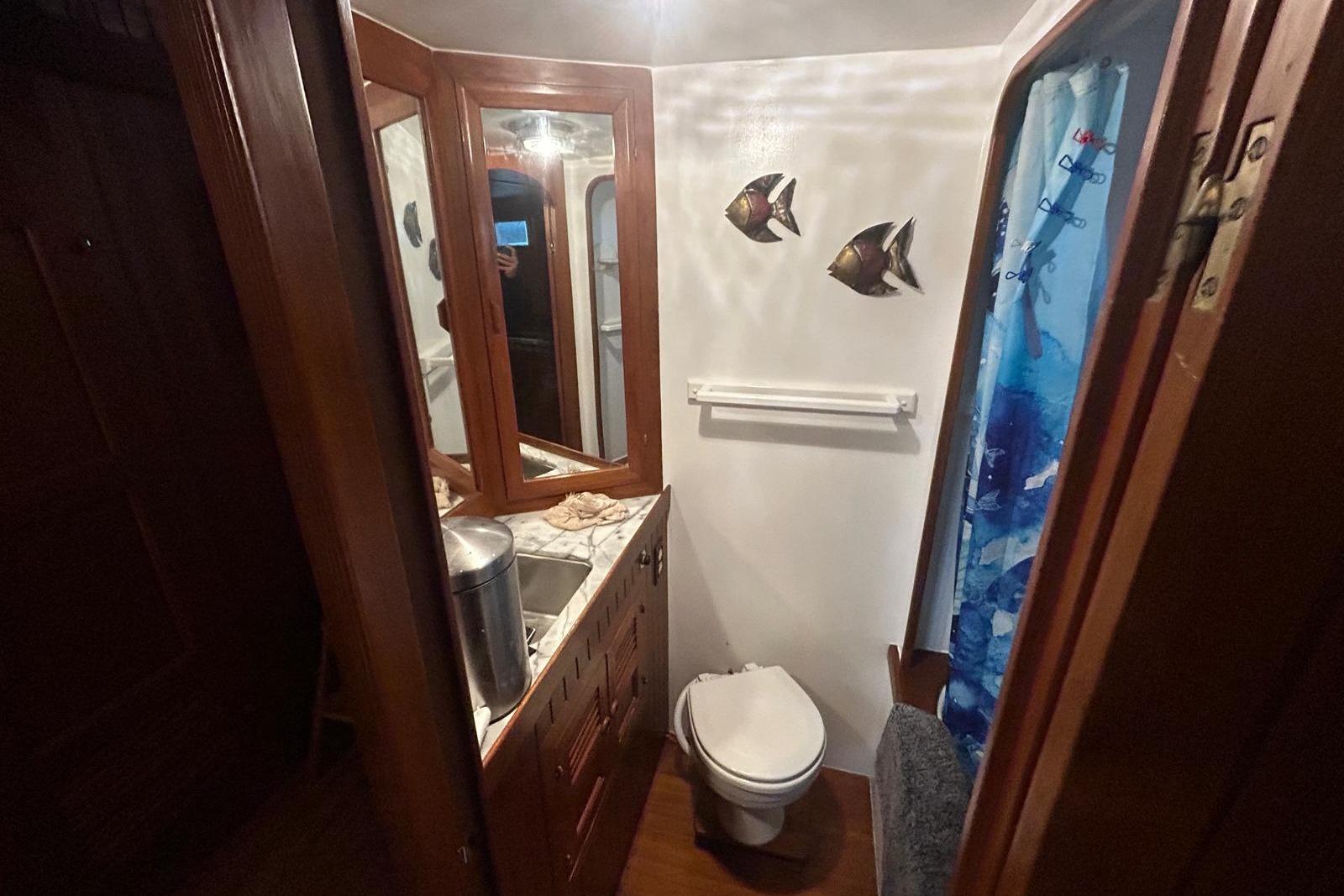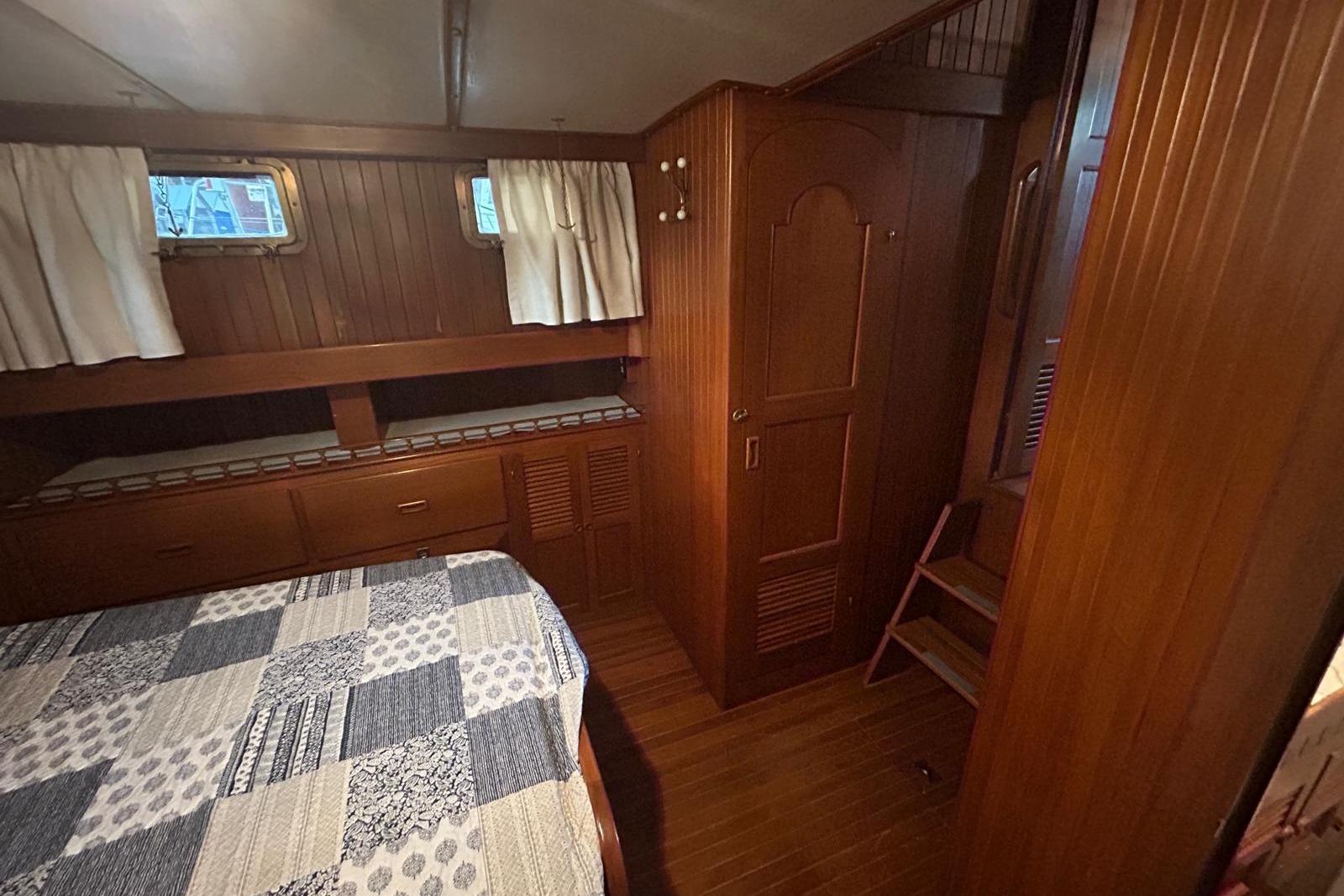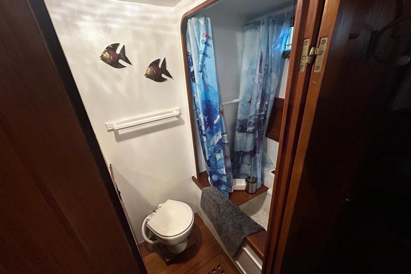 This Vessel has a huge interior, a large private V-Berth forward with a separate head, countertop, sink and shower. The main salon has a Large dinette. The Owner's cabin has a large double walk around bed, tons of storage and a large hanging locker. The ensuite head features a countertop, SS sink, electric head and a large soaker tub.